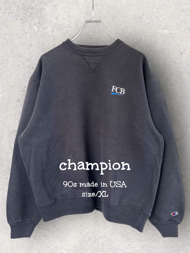 champion 90s made in USA size/XL 短丈のフェードスウェット☺️ 丸いシルエット可愛い短丈スウェット。 ブラックフェードの雰囲気良いスウェット。 刺繍ロゴ可愛いスウェット。 そんなガシガシ着たい地厚のスウェット。 リバースウィーブではなく、 「90年代・青刺繍タグ」の物。 独特の落ち感が出る この年代のレギュラースウェットは、 リバースウィーブ程重過ぎず、 春でもガシガシ着れるスウェット。 今回のアイテムは、 1990年代の、 青地の「青刺繍タグ」 90年代に入り文字が刺繍に変化した時期の物。 この年代のアスレチックウェアは タイト目な作りが多い中、 XLで着やすいサイズ感。 胸元のロゴ「FCB」は、 世界的な広告代理店の 当時の企業ロゴ。 90年代当時従業員への ギフトやプロモーション用に Championなどの高品質な ボディを使って作った「企業モノ」 今気分の短丈で 肩が落ちる理想的な 「ショート丈×ワイドシルエット」 が作れるサイズ感です。 是非着画の確認、 宜しくお願いします☺️ 写真 1〜7枚目迄商品写真 8枚目以降はスタイリング写真 肩幅 57㎝ 袖丈 59㎝ 身幅 66㎝ 着丈 64㎝ 着用者(171㎝ 肩幅広め)