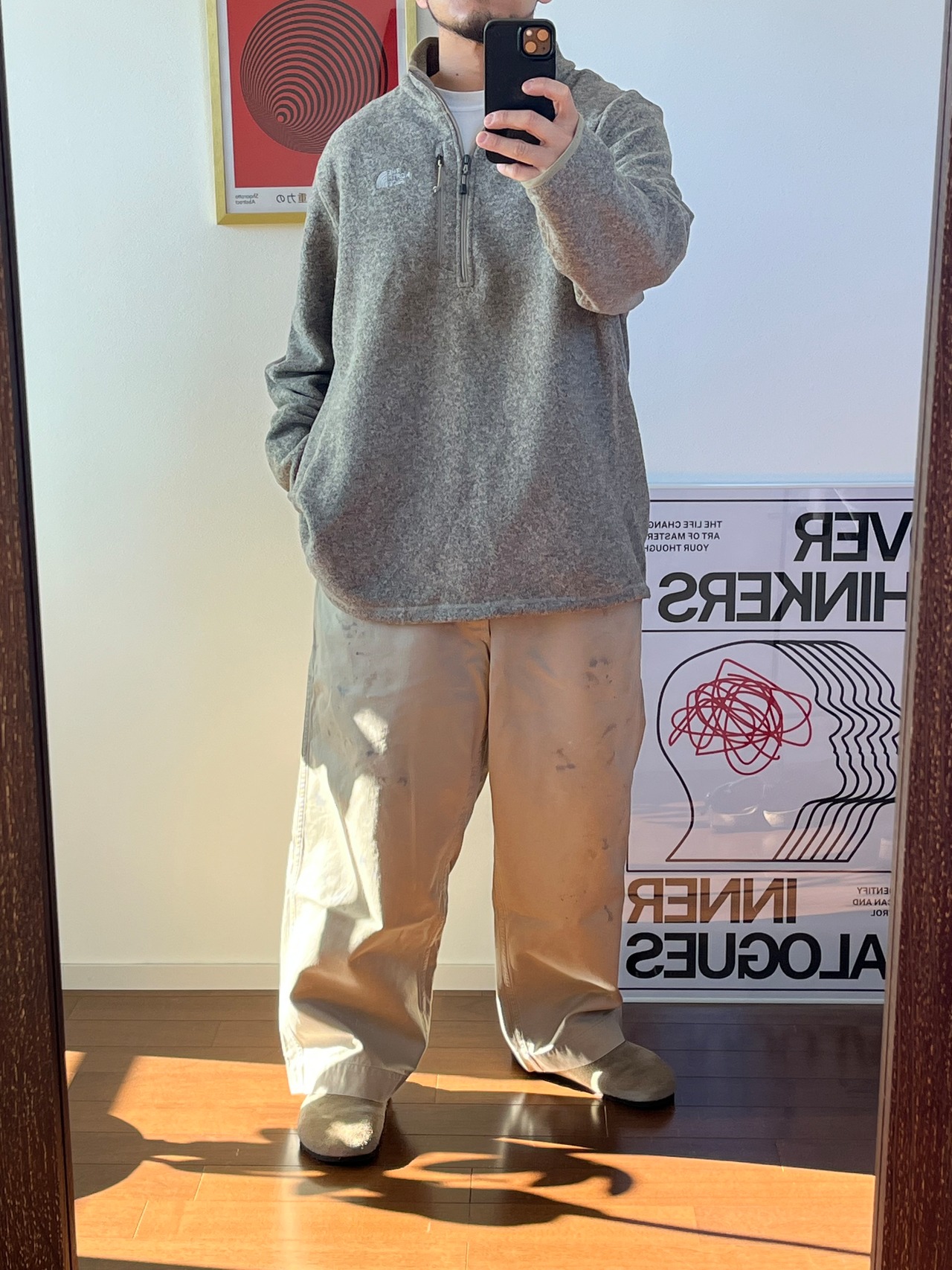 ごま塩ベージュの珍しいフリースハーフジップ☺️