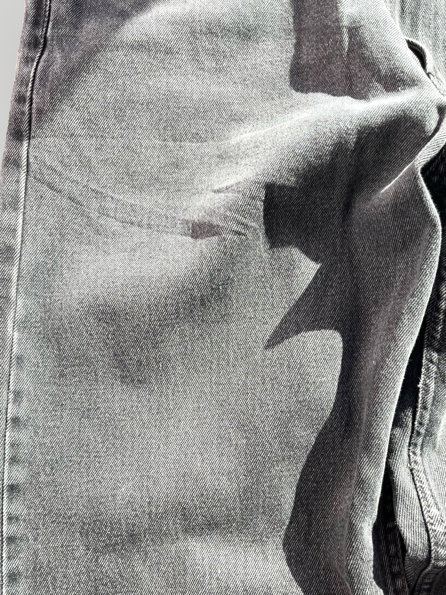 綺麗にアタリの入った炭黒デニム。
