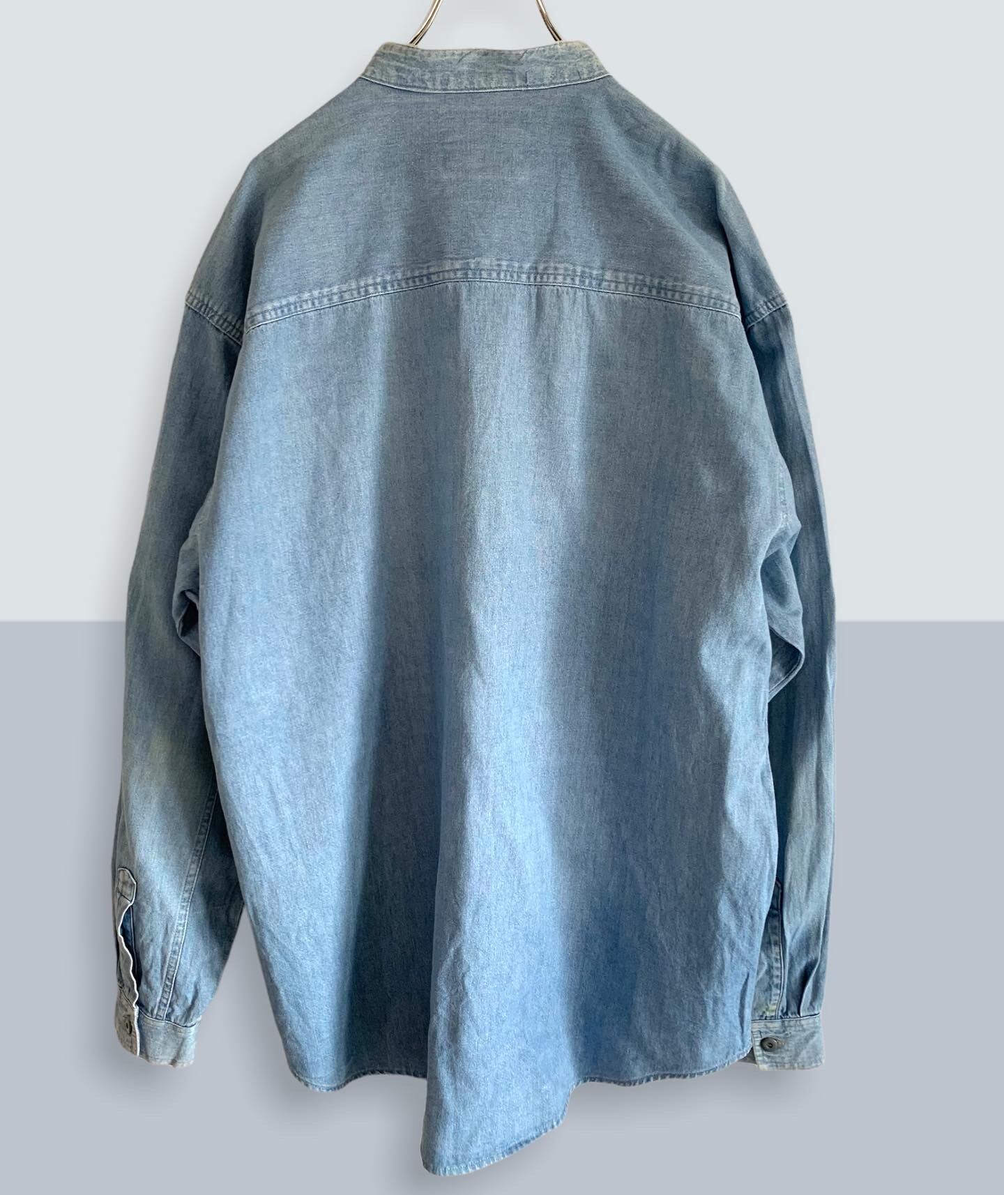 デニムの色落ち絶妙なバンドカラーシャツ。、