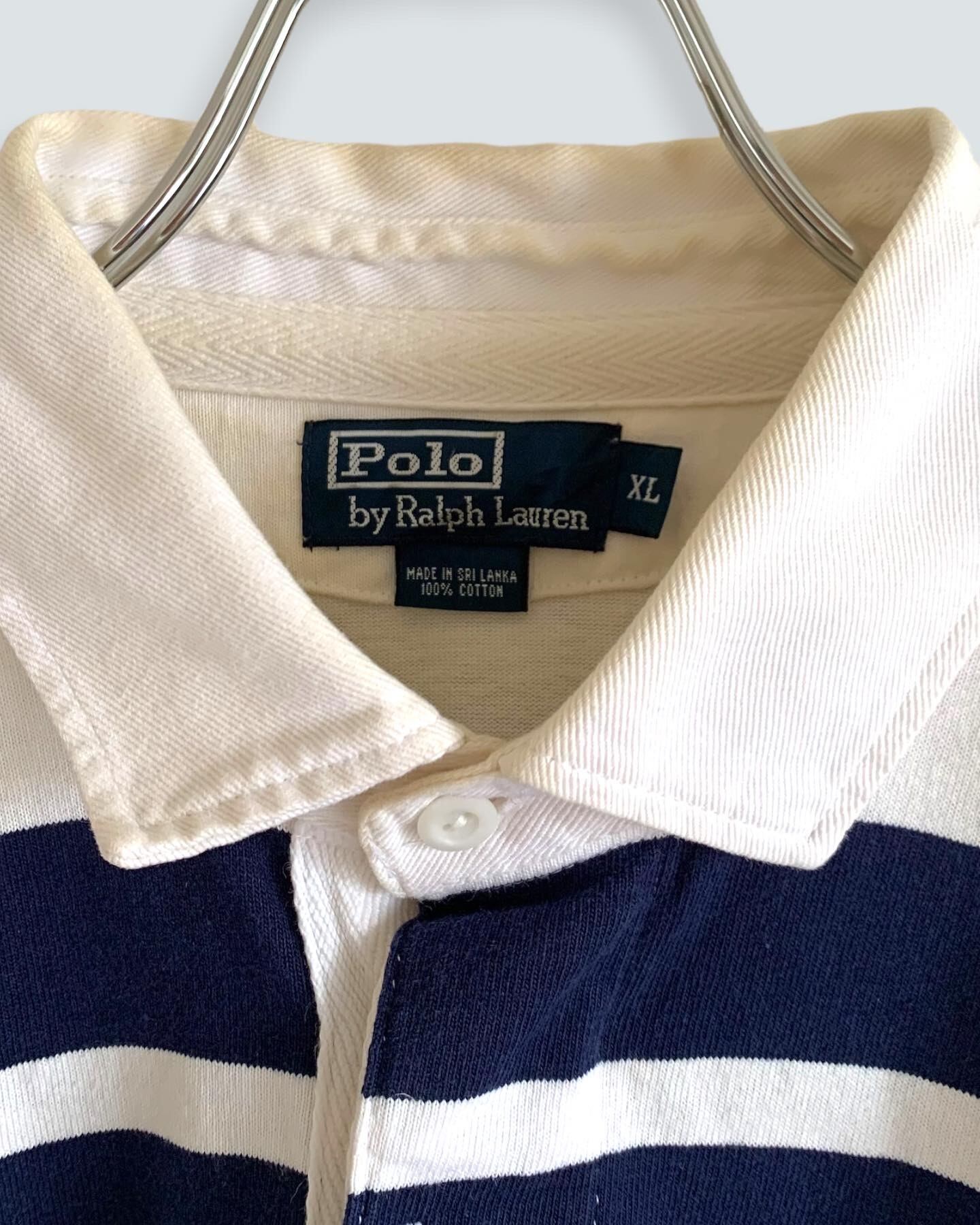 白ボーダーのメチャクチャ使い易いラガーシャツ"Ralph Lauren"size/XL