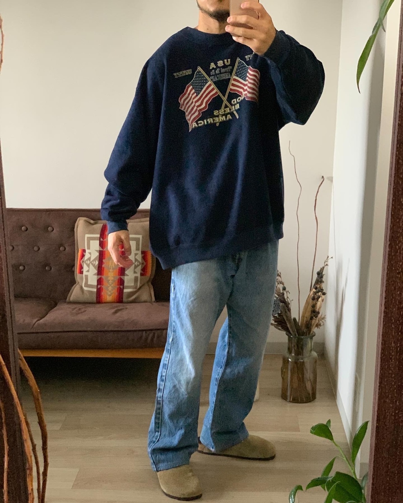 ネイビーの大きいスウェット!星条旗のプリントが最高☺️ size/XL