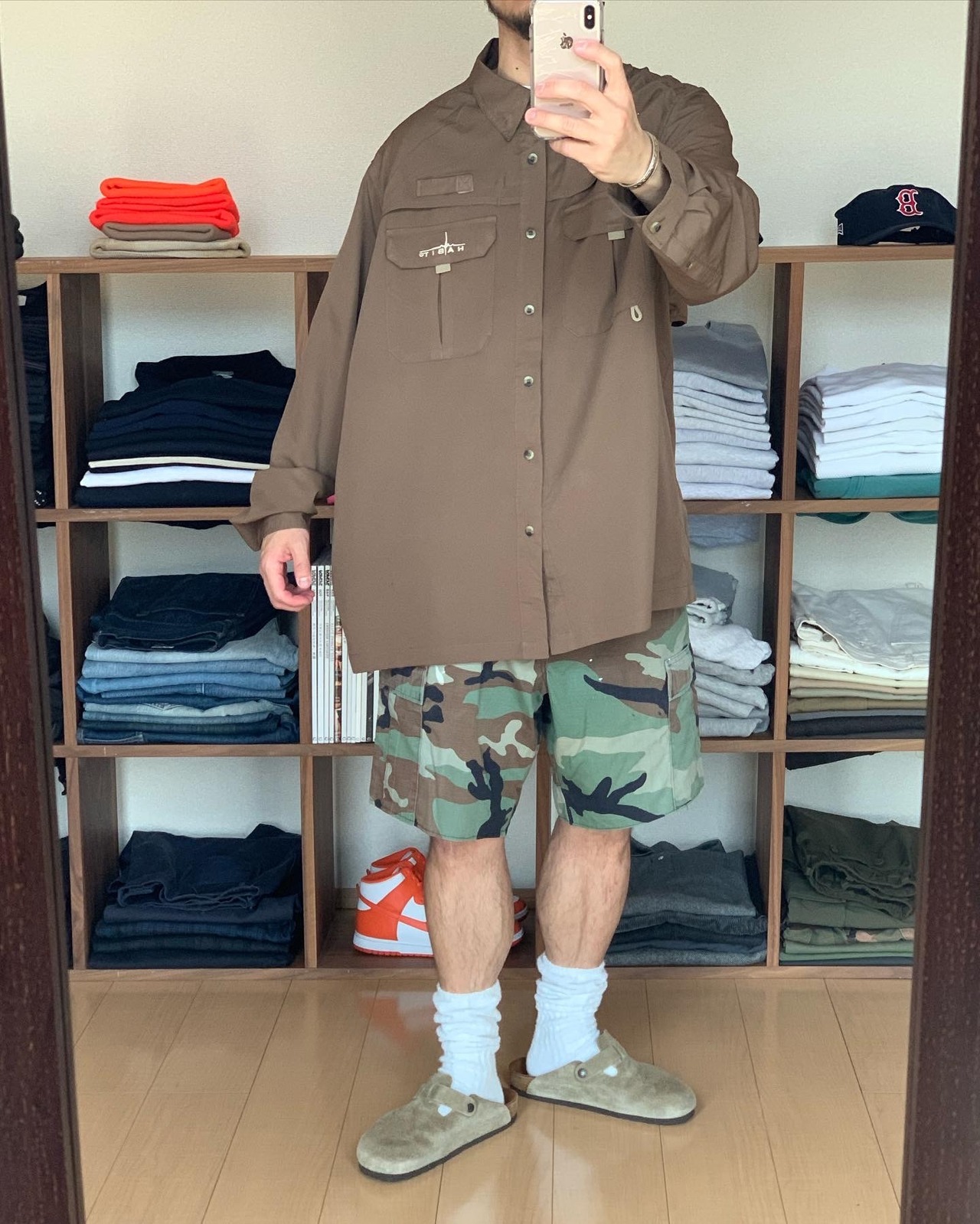 迷彩の短パン。