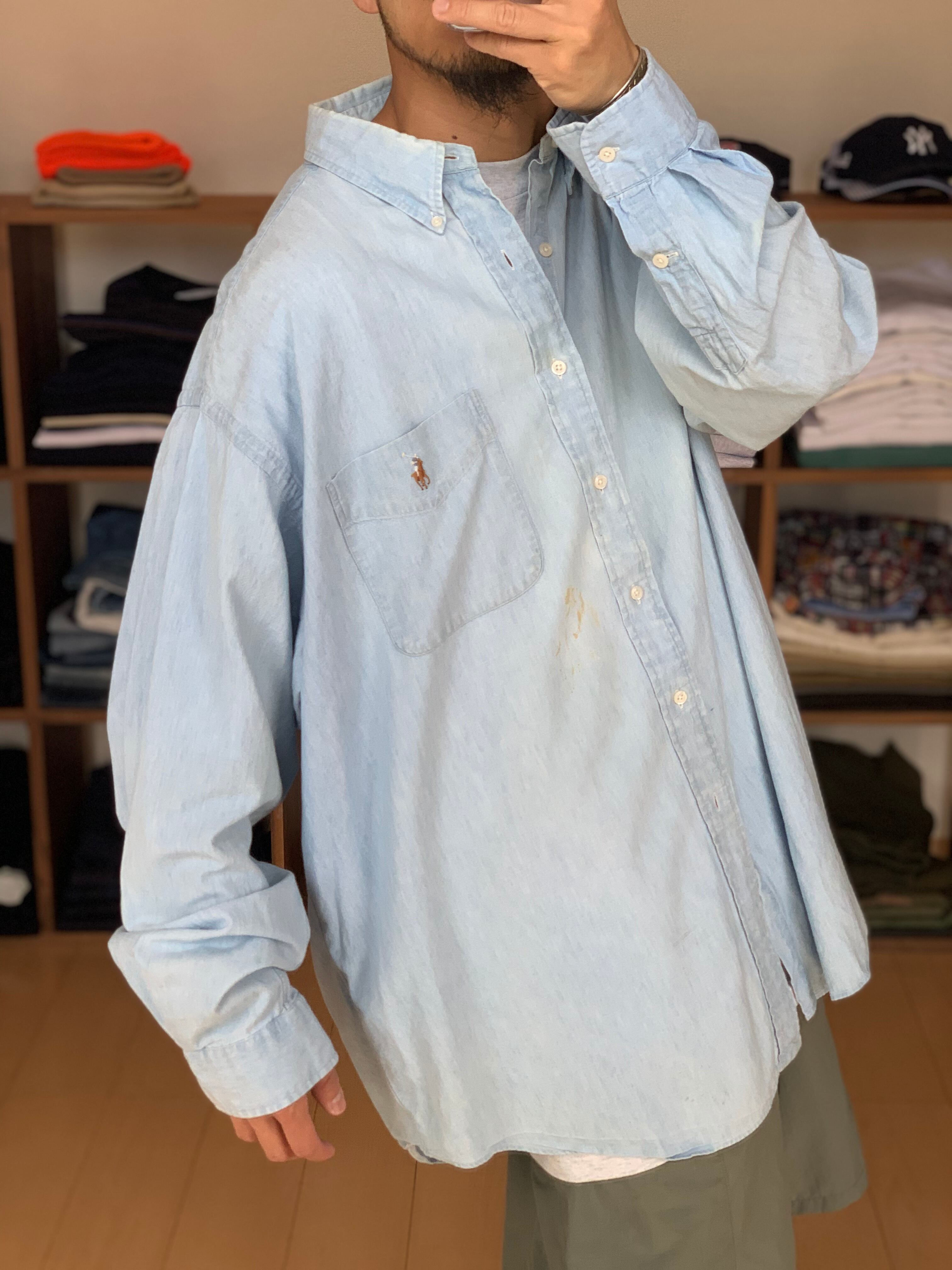 メチャクチャ薄い色のシャンブレーシャツ。