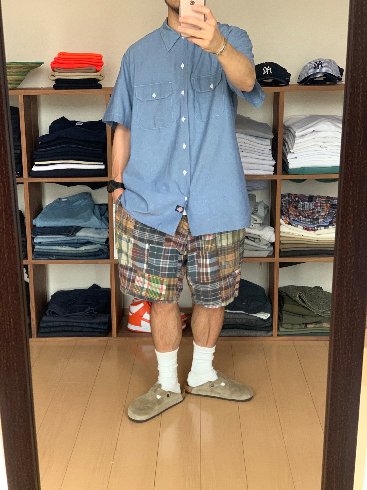秋最初に、デニムシャツやスウェット。