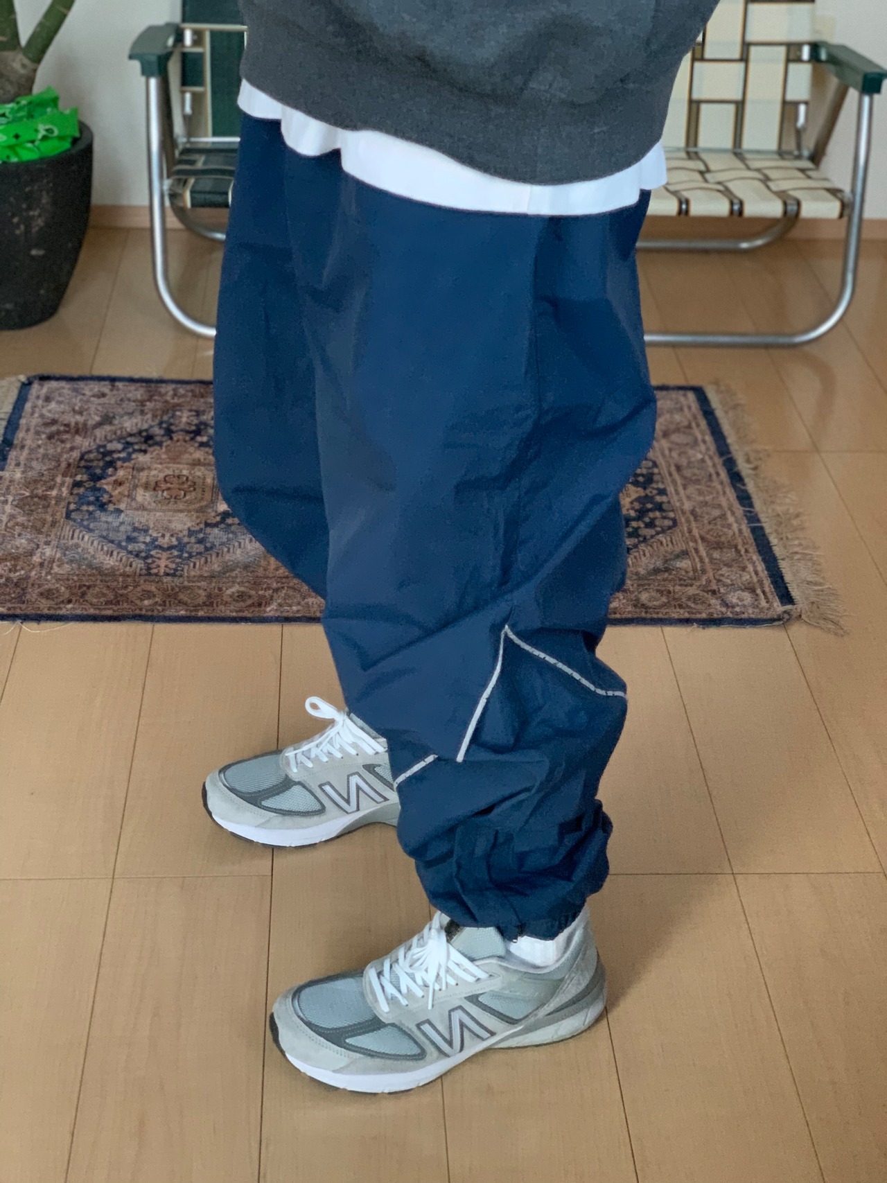 長さも気にせず穿ける軍物のトレーニングパンツ。