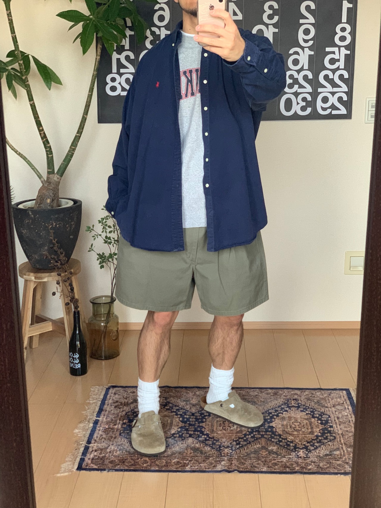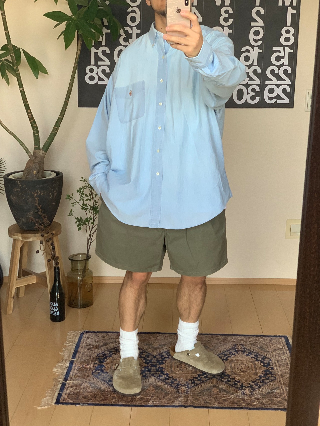 白、ブルー、デニムにオリーブの短パン。